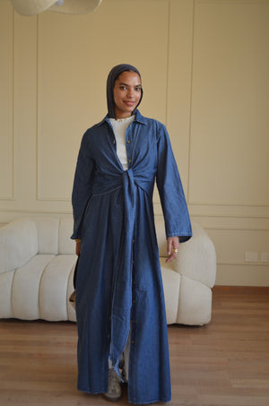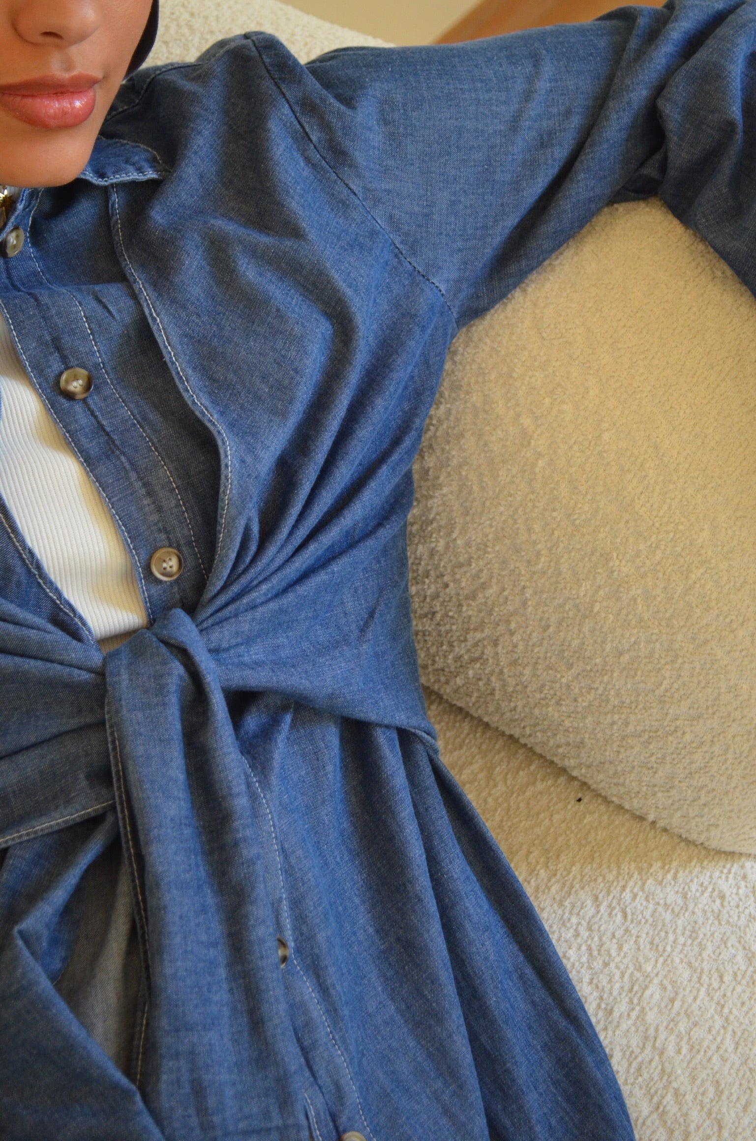 • Design : Features a unique twisted front detail that adds a stylish flair to a classic shirt dress.
